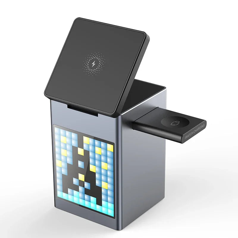 6-in-1 multifunctional wireless fast charging Bluetooth speaker alarm clock cartoon pixel for charging mobile phones/watches