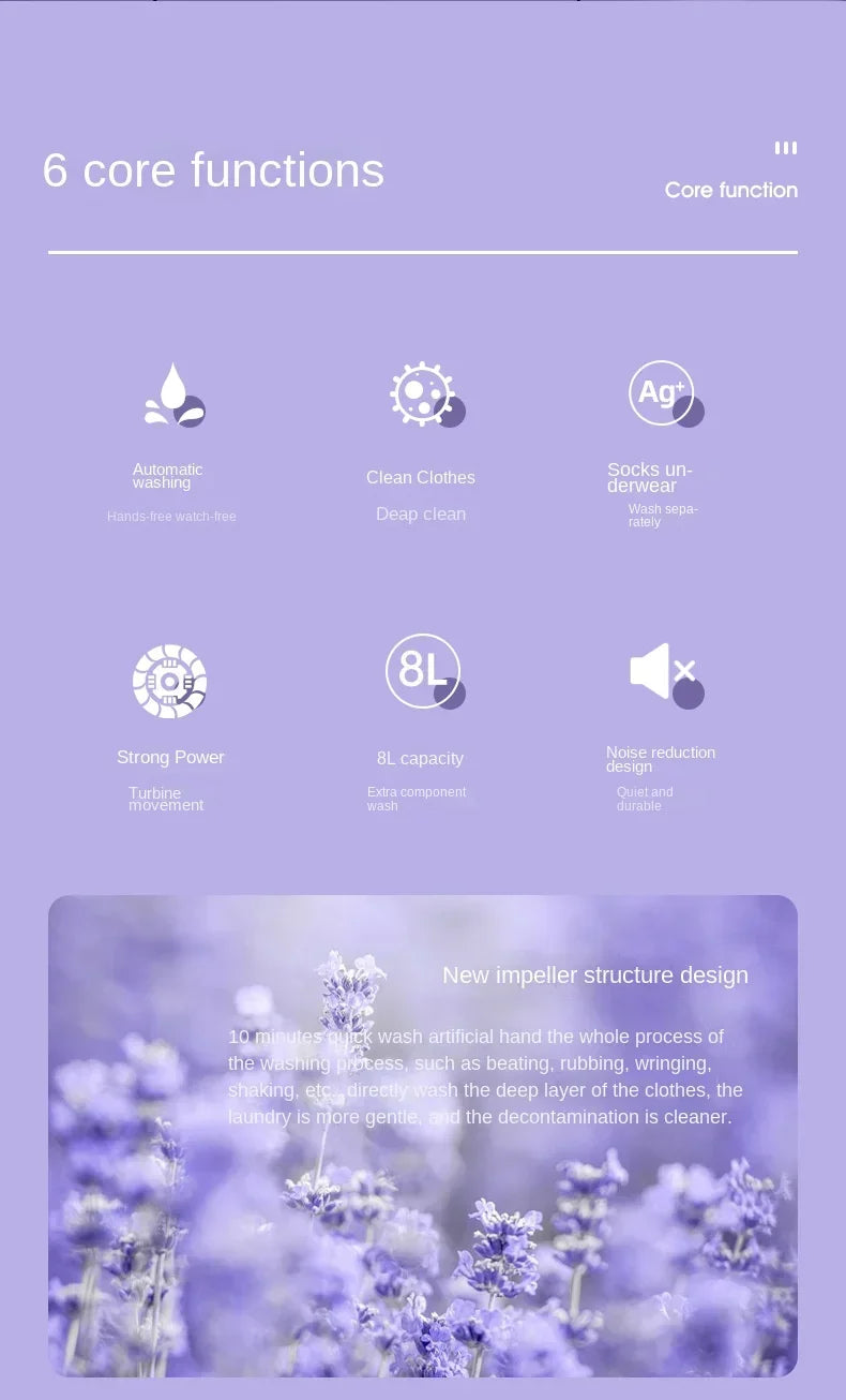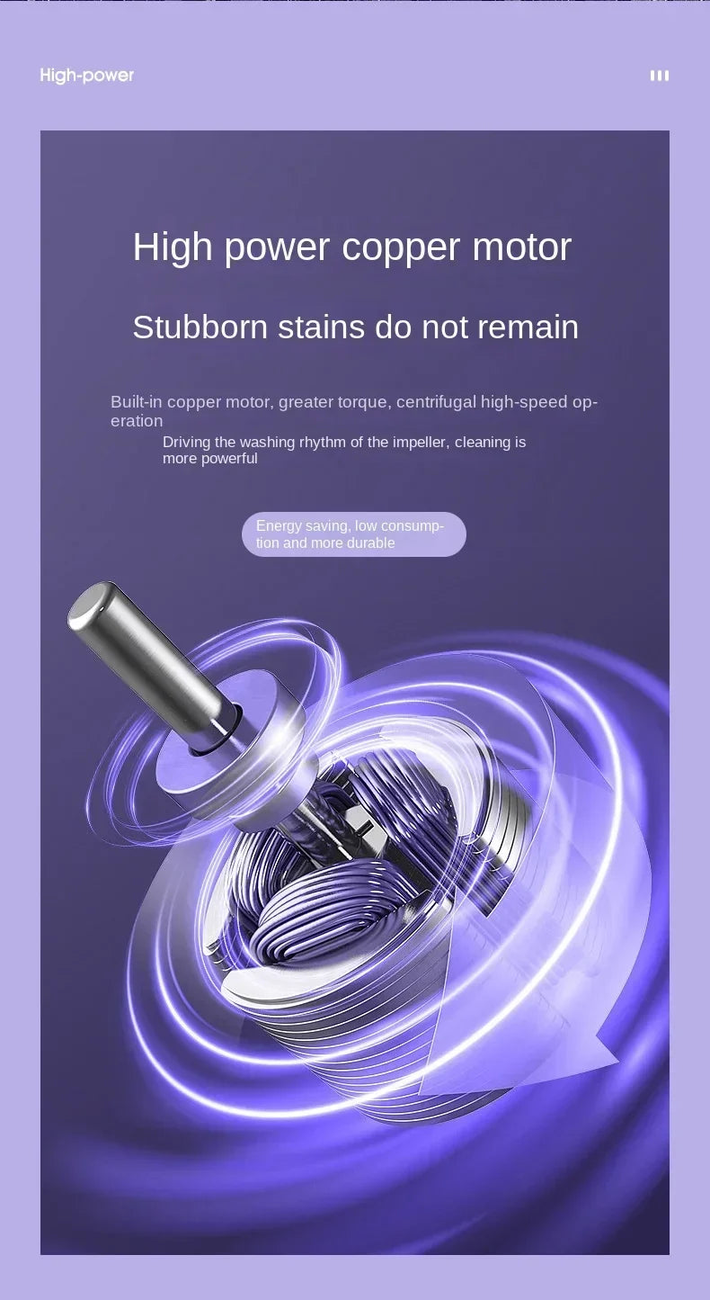 How to use: Step 1: Connect the power supply. Step 2: Press the bottom button and, after 2 seconds, the washing machine will start. After the machine is turned on and the mode is selected, do not touch it anymore. Cleans automatically.