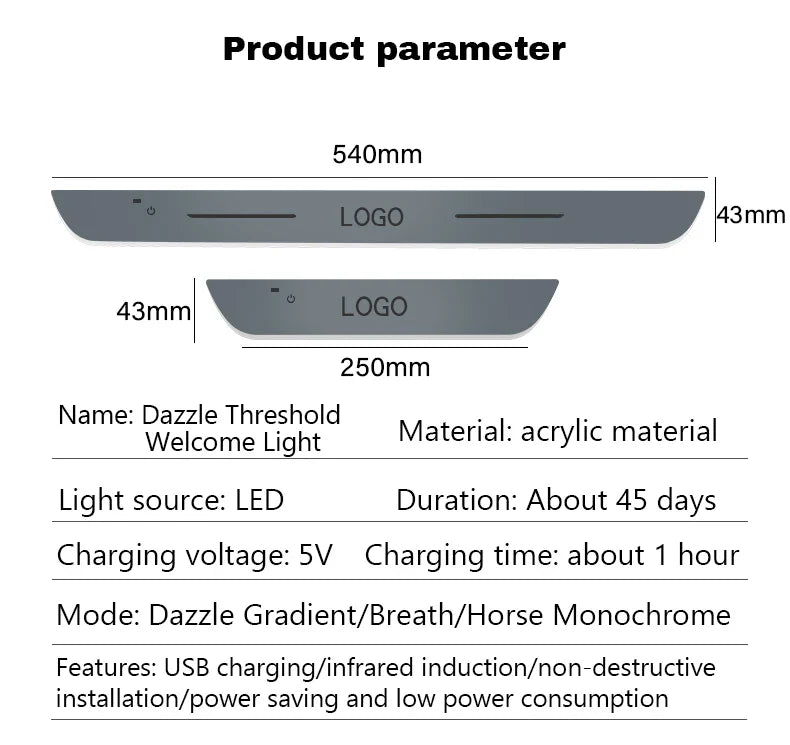 Car Welcome Door Sill Light Threshold Lamp Welcome Plate Pedal Light with Wireless LED Light Adjustable color changing mode