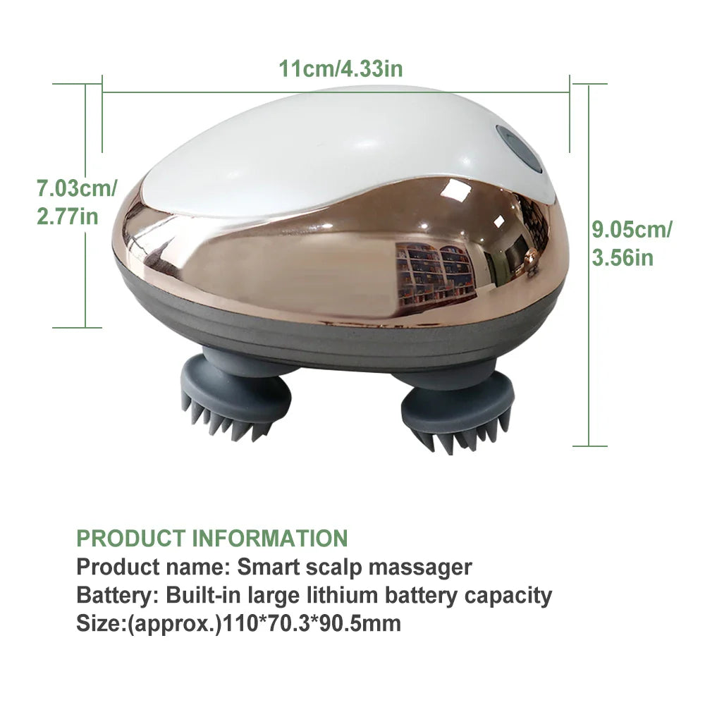 Four-Finger Kneading Massage: Electric scalp massager, easy 1 button operation.