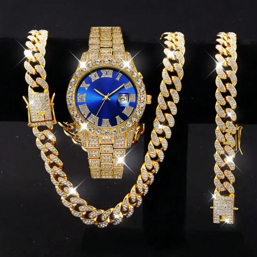 Hip hop style 13mm dragon beard buckle Cuban chain necklace bracelet men's watch suit fashion personality men's accessories